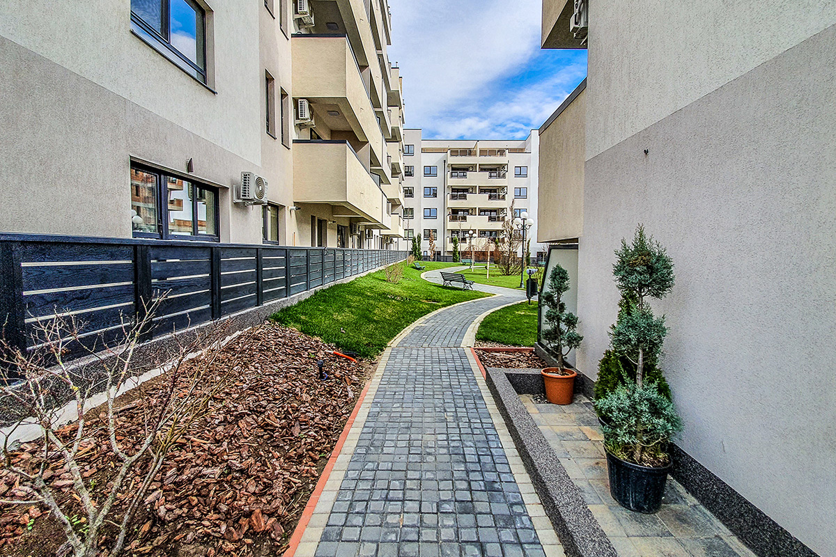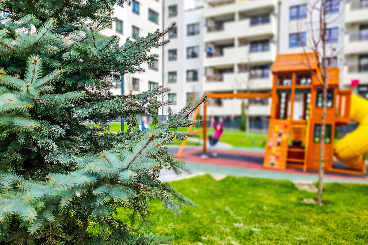 Dincolo de calitatea construcției, ne-am dorit să creăm un mediu care să inspire relaxare și armonie. Astfel, am proiectat un parc natural de 1200 mp, cu alei de plimbare, spații de joacă și vegetație atent aleasă – pini, brazi, mesteceni și tuia. Complexul dispune de numeroase locuri de parcare și de zone comerciale, pentru a asigura un stil de viață confortabil și accesibil.